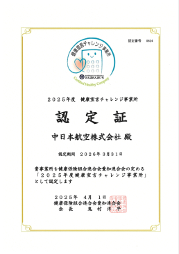 中日本航空は『安全確保は事業活動の基盤でありすべてに優先します』という安全方針のもと、安全確保は、それを支える従業員一人一人の心身の健康こそが大前提であると認識し、従業員の健康保持・増進活動を積極的に支援していきます。