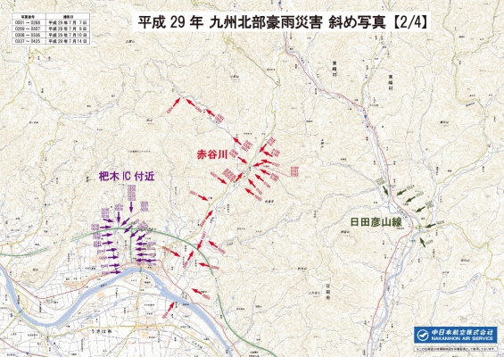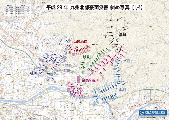平成29年(2017年)7月に発生した「九州北部豪雨災害」の空中斜め写真撮影を実施しました。