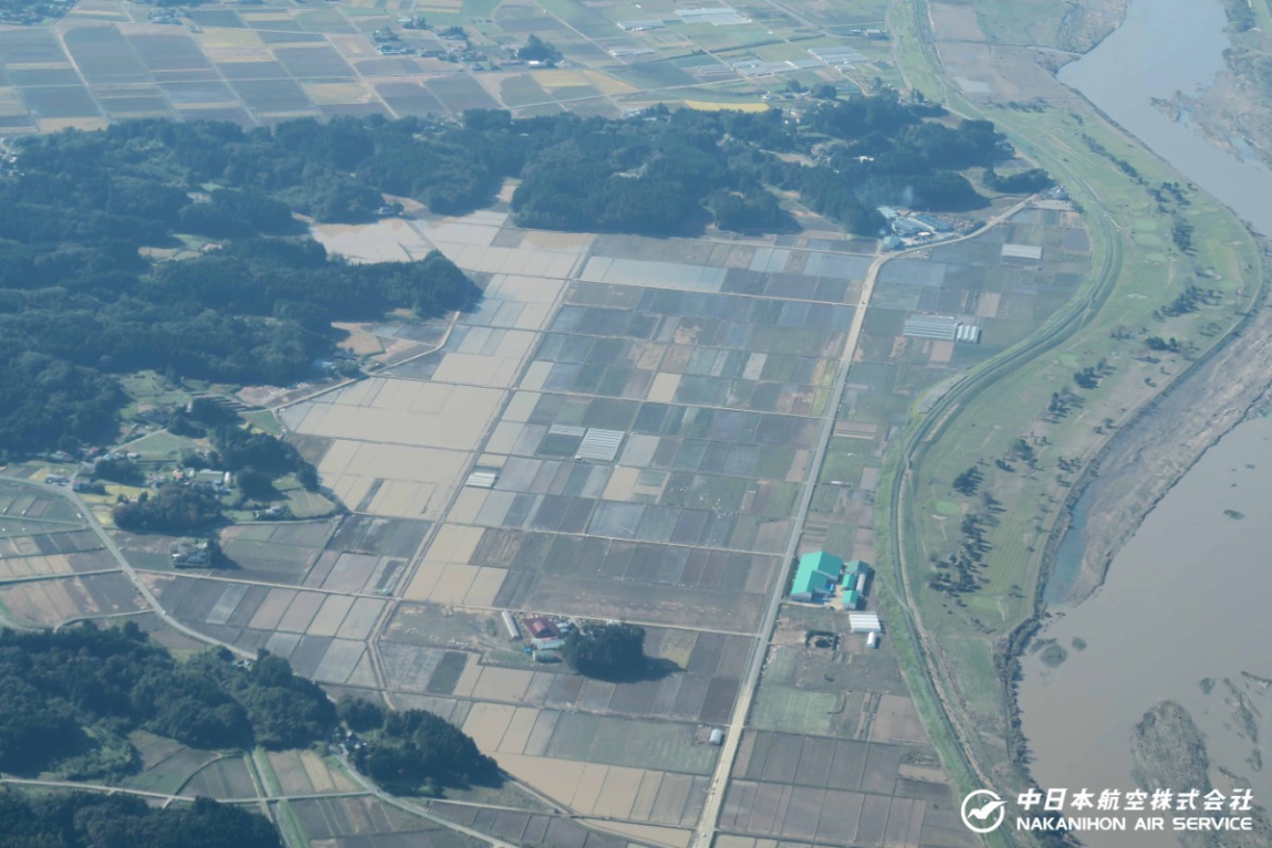 弊社では災害状況を踏まえ、浸水被害の大きかった地区(宮城県角田市・大郷町)の斜め写真撮影を10月16日に実施しました。