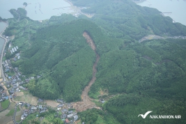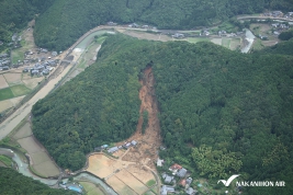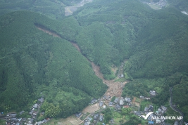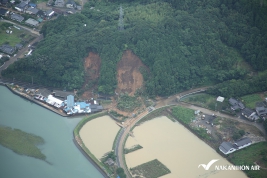 弊社では協力会社の支援のもと、7月5日に土砂災害・河川氾濫による浸水被害地区(熊本県 芦北地区)の斜め写真撮影を実施しました。