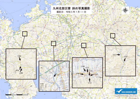 中日本航空株式会社では協力会社の支援のもと、7月11日に九州北部地方の斜め写真撮影を実施しました。