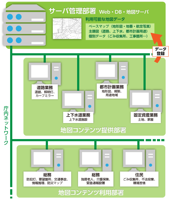 庁内ネットワーク、地域とのコミュニケーションを実現する地理情報システム