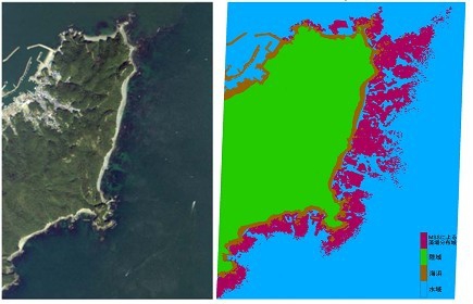 撮影画像の他に近赤外画像を同時に得られますので、得られた画像を処理することにより藻場の分布を写真に重ね合わせることができます。