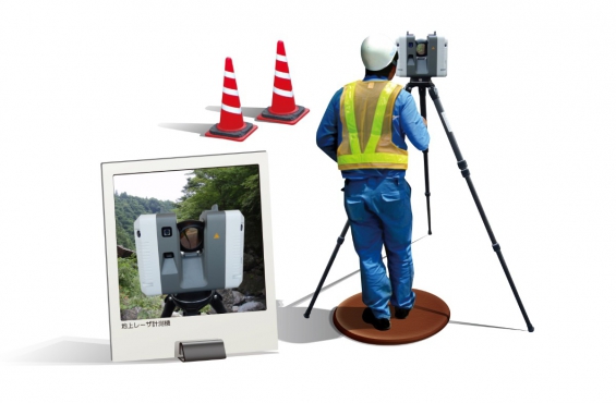 地上レーザ計測は、地上の固定位置からレーザを照射し、対象物を計測する技術です。
